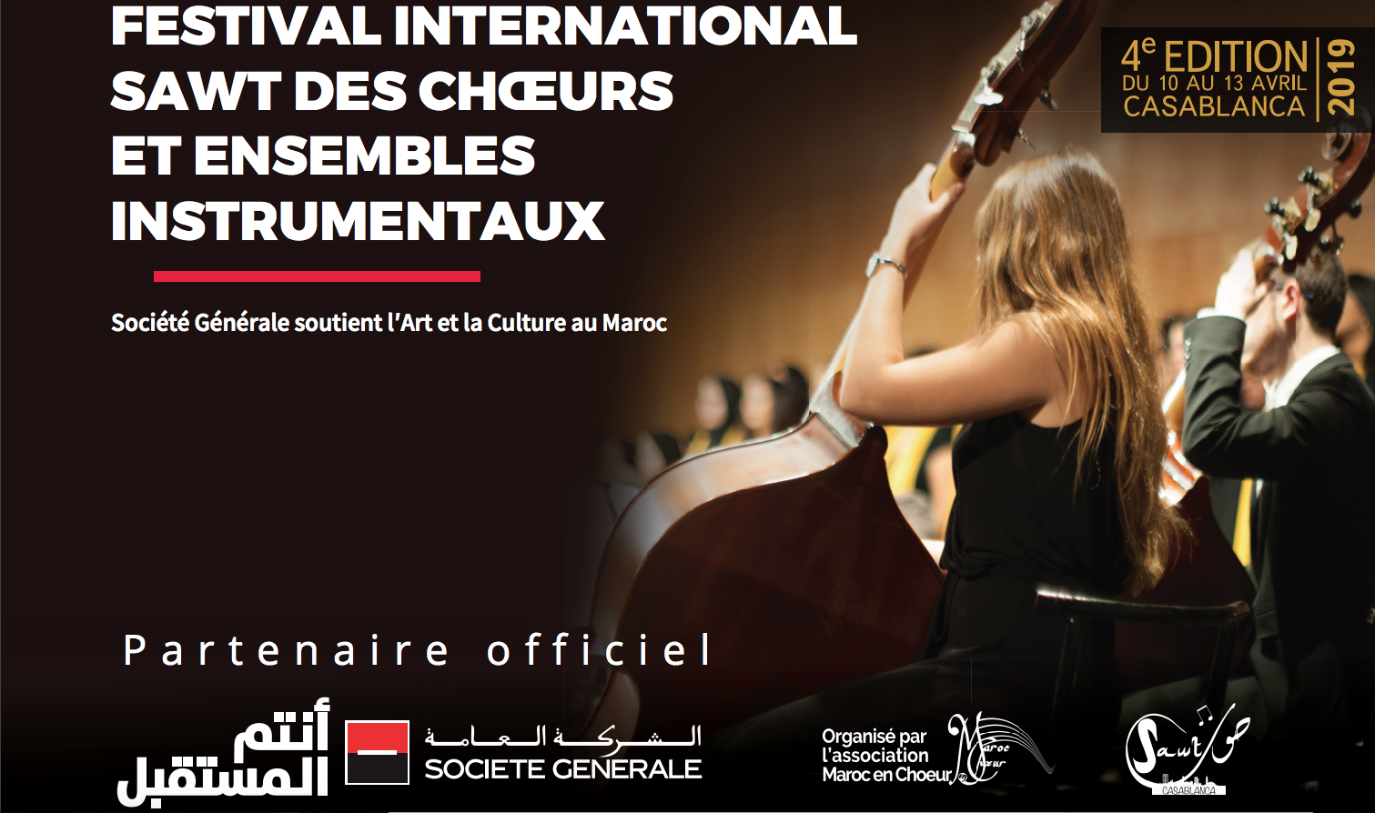 L’association « Maroc En Chœur », en partenariat avec Société Générale Maroc, organise la 4ème édition du Festival International Sawt des Chœurs et Ensembles Instrumentaux, du 10 au 13