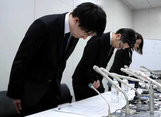 Le président de la plateforme d'échanges électroniques Coincheck Koichiro Wada s'incline en signe d'excuse après un casse virtuel massif à Tokyo, le 26 janvier 2018 © JIJI PRESS/AFP/Archives -